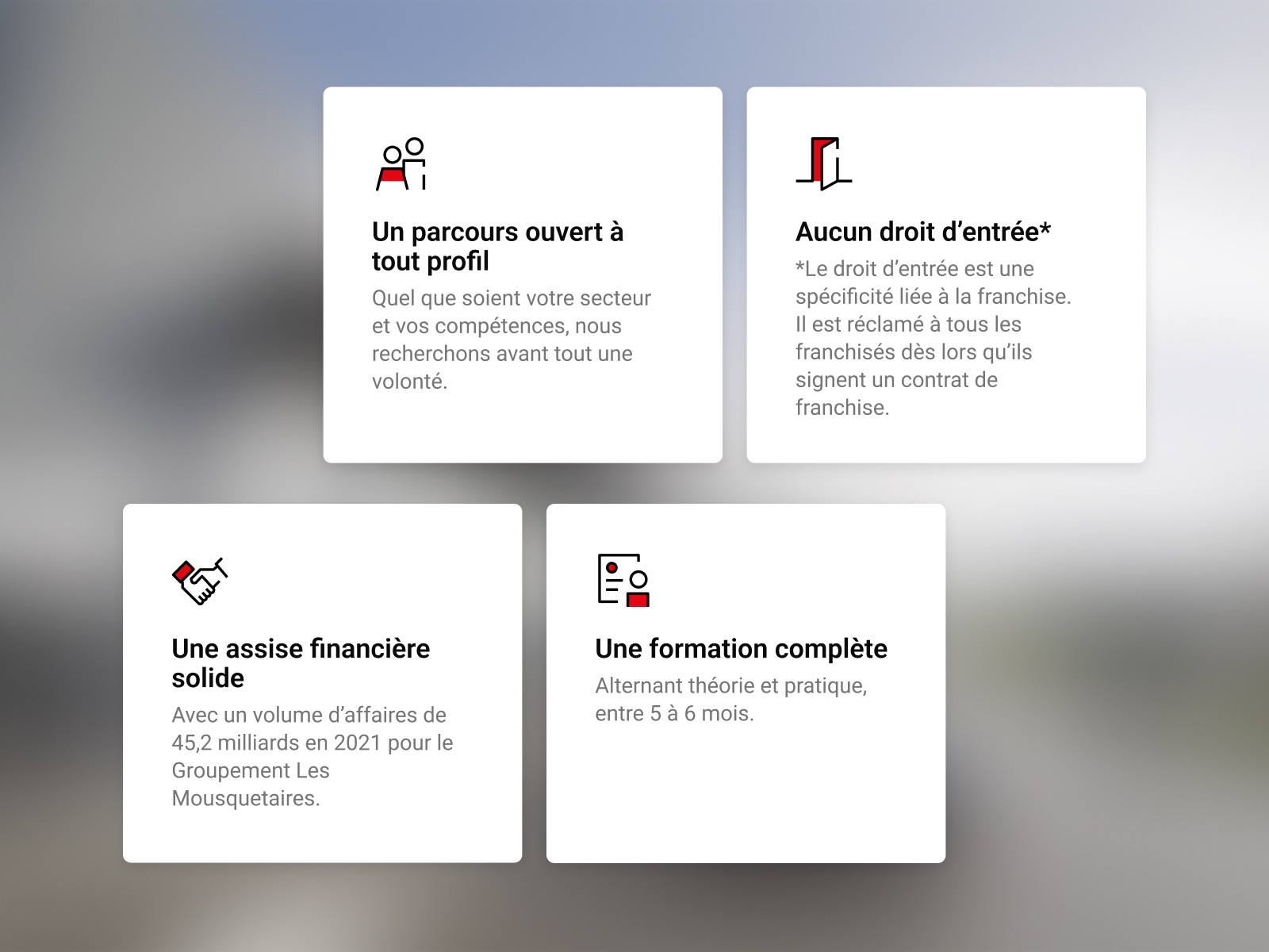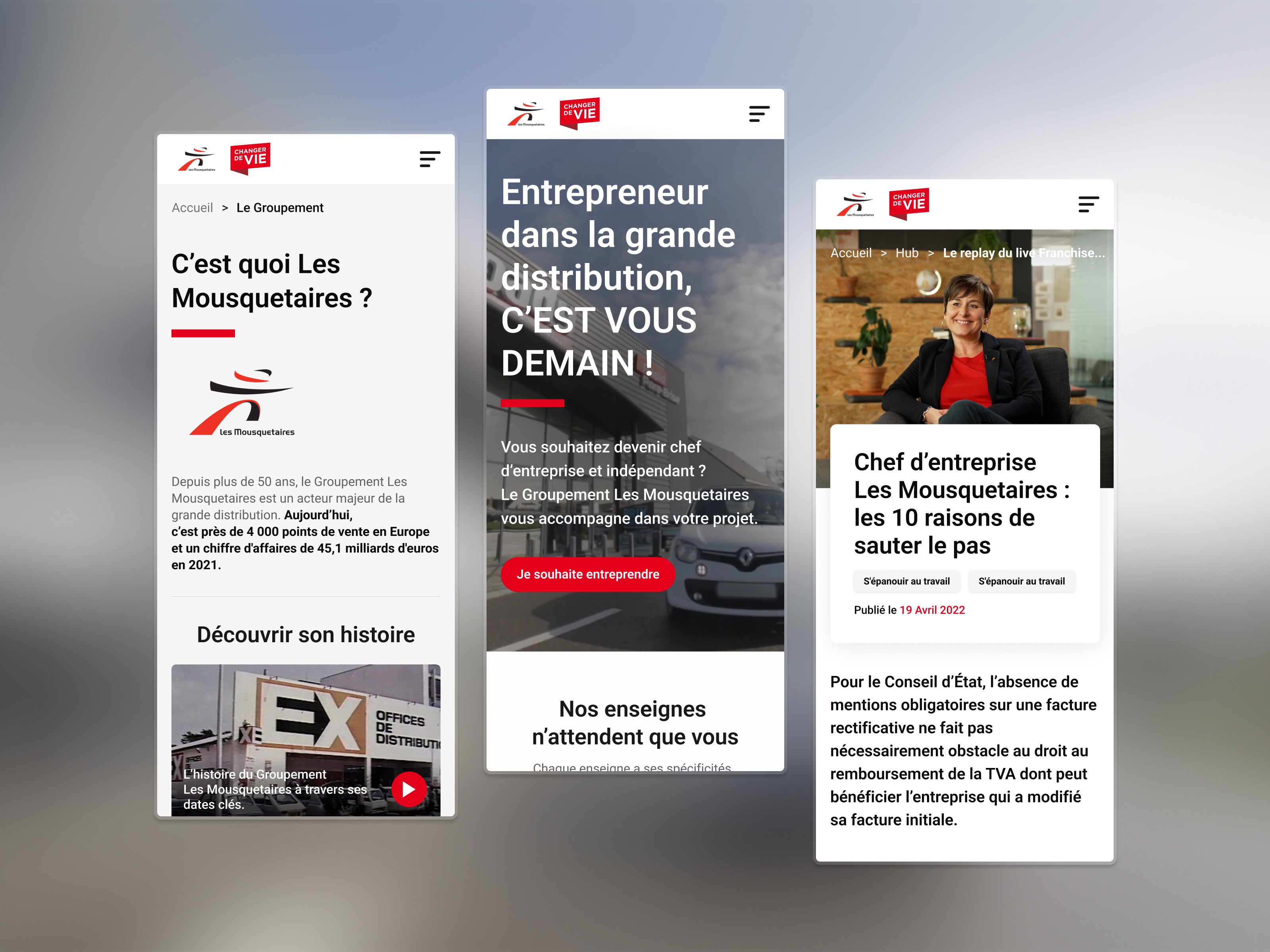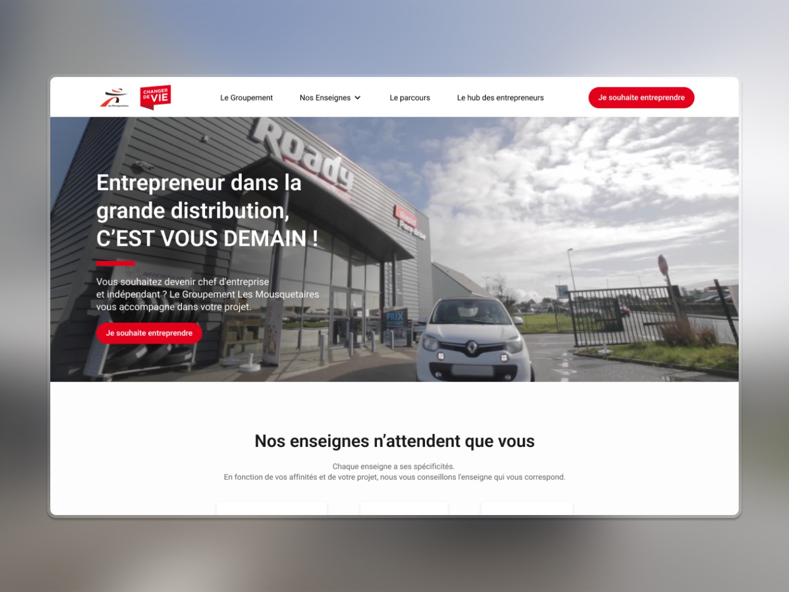 Accompagner l'Union des Mousquetaires dans sa stratégie de recrutement d'entrepreneurs indépendants en repensant l'expérience digitale du site — avec un objectif clair de génération de leads et une cohérence visuelle renforcée à travers toutes les enseignes du groupe.